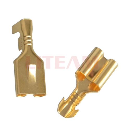 6.3 Serie Krimp Automotive Terminal 6.3Mm Vrouwelijke Spade Connector Messing 6.3 Krimpaansluiting Met Achterslot