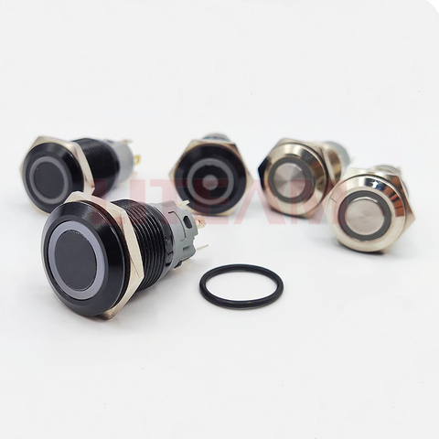 19Mm Kortstondige Zwarte Korte Body Flat Duw Schakelaar Waterdicht Ultra Dunne 3V-6V Rgb Led Verlichte Metalen Drukknop Schakelaars